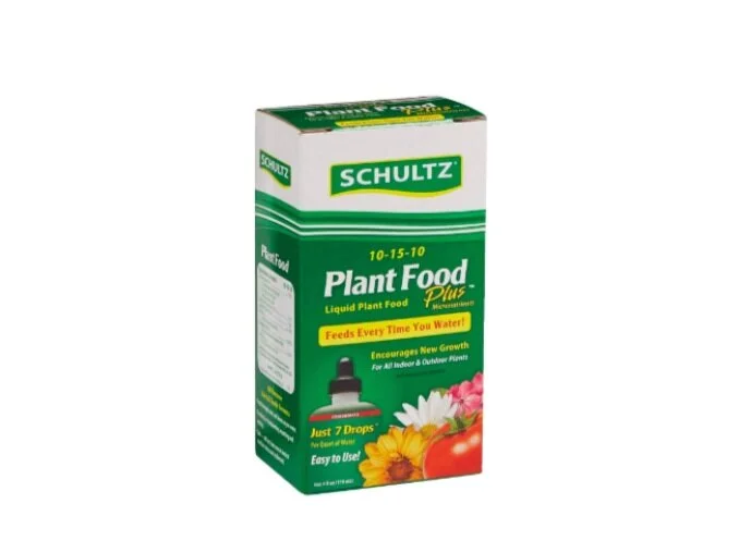 I incorporate fertilizer into my watering routine once a month during the growing season, April through Late October. Depending on the plant type, I’ll add a dropper of all-purpose fertilizer into my watering can for general houseplants, such as my tropicals, or a dropper of cactus fertilizer for cactus/succulent. My trusted fertilizer brand, Schultz, is linked below.